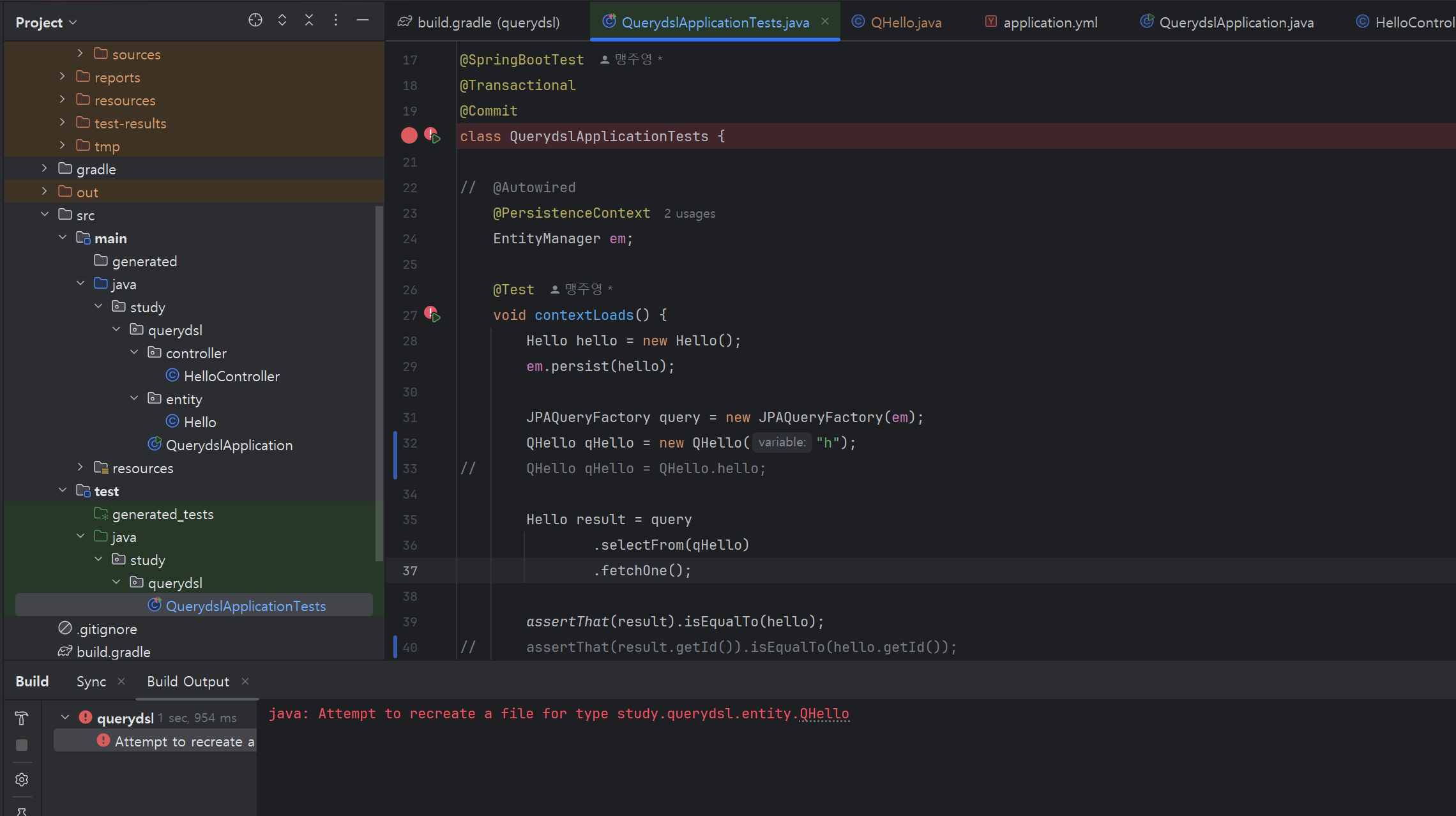 2024.11.17 - [QueryDSL] - [JPA활용] JPQL vs Querydsl - assertThat() 사용법 [JPA활용] JPQL vs Querydsl - assertThat() 사용법JPQL vs Querydsl두가지를 비교하기 위한 테스트 코드이다참고로 봐주면 좋을 것 같고, 강의는 인프런에서 들으면 된다 ! ✅ assertThat() 사용법강의를 따라 코드를 작성하다보면 assertThat()을 사용하juble00.tistory.com저번 글에 이어 이번 글은 Q-Type 활용 방법이다. 먼저, 저번에 작성했던 Test 코드를 보겠다!✅ Q클래스 인스턴스를 사용하는 2가지 방법1. 별칭 직접 지정package study.querydsl;import com.querydsl.jpa...